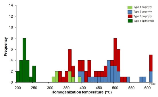 - Audétat, A.; Pettke, T.; Heinrich, C.A.; Bodnar, R.J. Special paper: The composition of magmatic-hydrothermal fluids in barren and mineralized intrusions. Econ. Geol. 2008, 103, 877–908. [Google Scholar] [CrossRef]