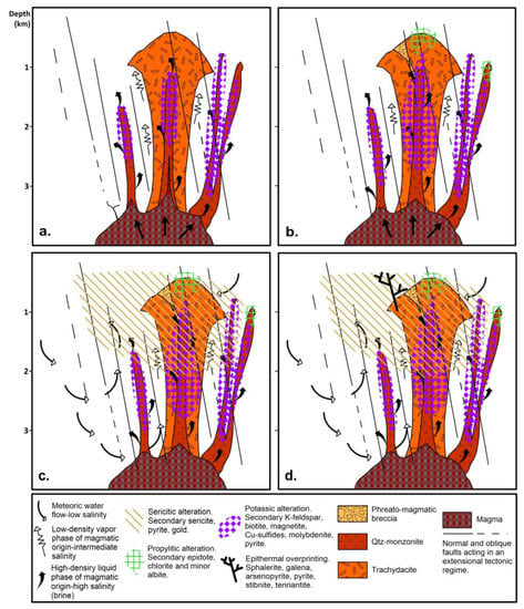 - Sillitoe, R.H. Ore-related breccias in volcanoplutonic arcs. Econ. Geol. 1985, 80, 1467–1514. [Google Scholar] [CrossRef]