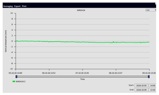 The frequency of measurements should be adapted to the course of the construction works and the current technical condition of the building. Conducting traditional geodetic measurements allows the results of displacements to be obtained in quite significant time intervals, which is often insufficient in relation to the significant dynamics and the speed of the phenomena occurring in the excavation. Therefore, systems that allow for the continuous measurement of displacements of existing buildings and the obtaining of measurement results on-line are becoming more and more popular. One of them is the innovative hydrostatic leveling cells system, which measures the vertical displacements of structures in real time with high accuracy using a network of connected sensors [].