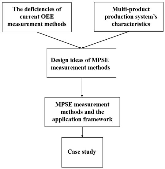 In this paper, a heuristic method is adopted. Based on the deficiencies of mainstream OEE measurement methods and the characteristics of the multiproduct production system, the design ideas are proposed. MPSE’s measurement methods and the application framework are developed. In the end, both of them are verified by the case study. The research scheme is shown in Figure 1.