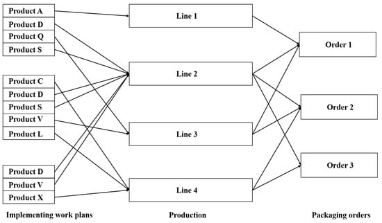 - Organizational complexity. Multiproduct production system is composed of the diverse manufacturing equipment, products, and so on. Therefore, there are more manufacturing strategies compared with a single product manufacturing system because of the customized demands, which implies a more complex production system [,,].