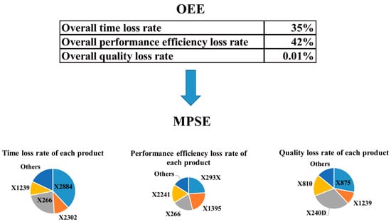 Overall Equipment Effectiveness (OEE), an approach to measure the losses of a machine or production facility, has been regarded as one of the core elements of production control and Total Productive Maintenance (TPM) [,]. It consists of three subindicators: availability rate, performance effectiveness and quality rate []. For many years, OEE has been adopted to identify the untapped potential of the production capacity and improve the production effectiveness []. Therefore, OEE has been widely used in the industrial management to measure the efficiency of the production system. However, is OEE suitable for the multiproduct production environment? How can we apply the OEE into the multiproduct production system and improve the system continuously? In this study, we would like address these questions. This paper would focus on the application of OEE in the multiproduct production system, which has the benefits of measuring the losses and improving the production effectiveness in the multiproduct production environment, thereby enhancing the core competitiveness of the manufacturing enterprises.