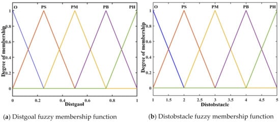 - New evaluation items are added to the original evaluation function and therefore a new evaluation function is established. Fuzzy logic is also introduced to adjust the weight of each evaluation item according to the working conditions. The distance from the agent to the goal and the distance between the agent and the obstacle are the basis for assessing the adjustment.