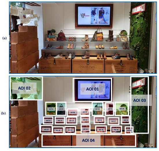 Footwear store area. Original image (a) and Areas of Interest (b). Source: Prepared by the authors.