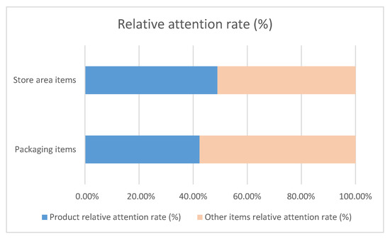 For both packaging and store area, the analysis of the attention rate (%) dedicated to the product, relative to other elements, is shown in Figure 5.