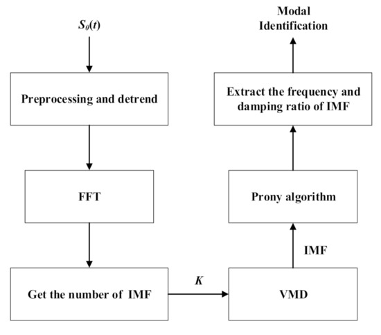 At present, there are multiple modal decomposition methods, such as the Kalman filter, wavelet transform, EMD, eigensystem realization algorithm (ERA), and variational mode decomposition (VMD). By combining the above methods with the Prony algorithm, the interference in the original signal can be removed and the identification accuracy of the Prony algorithm can be greatly improved [19,20,21]. Among the above methods, the scheme of the VMD method, combined with the Prony algorithm, can obtain relatively high identification accuracy.