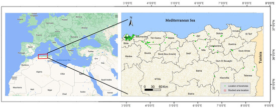 In the current study, a database of 875 Oedometer and other geotechnical tests has been collected from 570 boreholes. The reason for choosing the Northeast Algerian area is attributed to the widespread clay and marl geological formations, which generally suffered from shrinkage-swelling phenomena, resulting into a database including a wide range of data, sufficient for a reliable study. The sample depth (Z) ranges between 0.5 to 45 m with an average of 6.66 m. Figure 2 illustrates the distribution of the collected boreholes in the study area. The soil parameters used in this study were measured in the lab depending on the international or European standards.