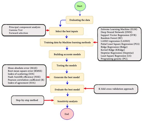 - Analyzing selected optimal inputs using several machine learning methods. The ELM, DNN, SVR, RF, LASSO, PLS, Ridge, KRidge, Stepwise, and PG methods have been used in this step for proposing 30 models.