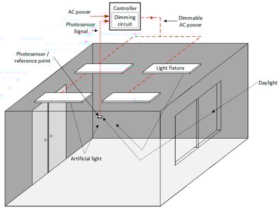 Schematic of a zone using a dimming control system from the integration of daylight and artificial lighting (authors elaboration).
