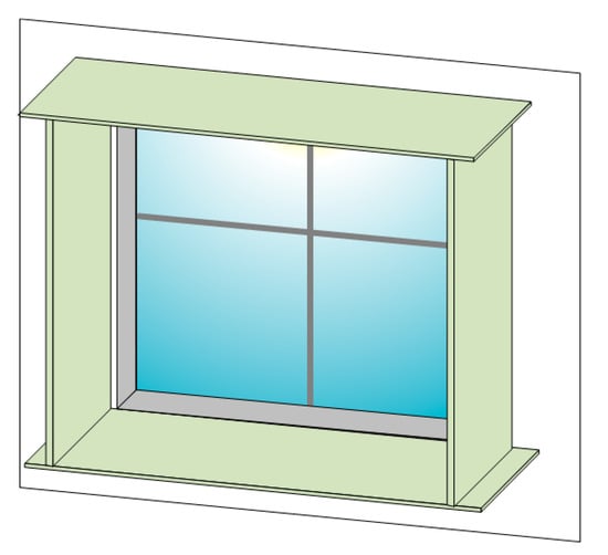 We employed static shading devices on the windows of the building in horizontal (overhangs) and vertical fins configurations, as shown in Figure 6. These configurations aim to reduce the penetration of sunlight into the building through the windows []. These structures were placed on the windows of all façades in the building model. The height and width of these structures are adapted to the dimensions of the windows and the depth was set at 60 cm in all windows.