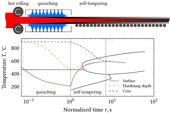- Park, C.S.; Yi, H.J.; Kim, Y.T.; Han, S.W.; Lee, T.; Moon, Y.H. Tempcore Process Simulator to Analyze Microstructural Evolution of Quenched and Tempered Rebar. Appl. Sci. 2019, 9, 2938. [Google Scholar] [CrossRef]
