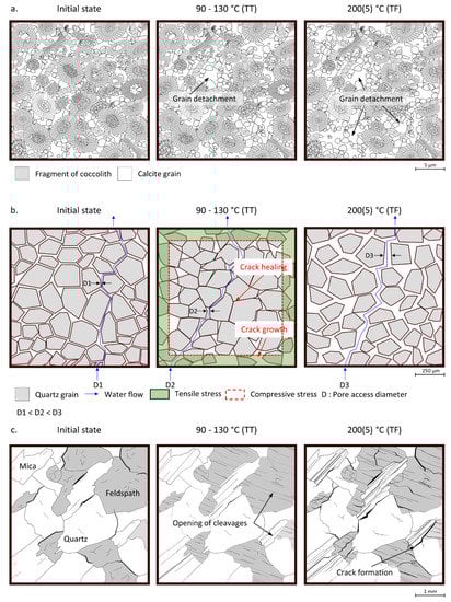 - Freire-Lista, D.M.; Fort, R.; Varas-Muriel, M.J. Thermal stress-induced microcracking in building granite. Eng. Geol. 2016, 206, 83–93. [Google Scholar] [CrossRef]