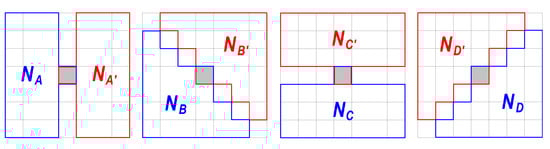 Figure 4. Neighborhoods used for the extraction of gradient features, with respect to the current pixel indicated by grey color.