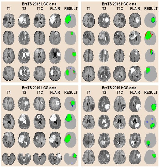 43. Szilágyi, L.; Iclănzan, D.; Kapás, Z.; Szabó, Z.; Győrfi, Á.; Lefkovits, L. Low and high grade glioma segmentation in multispectral brain MRI data. Acta Univ. Sapientiae Inform. 2018, 10, 110–132. [Google Scholar] [CrossRef]