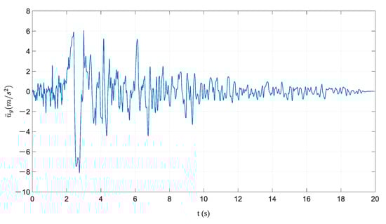 For further study of the influence of and the influence of earthquake characteristics, the far-field earthquake record of the Northridge earthquake in 1994, named ER2, is selected for analysis. The time history curve of ER2 and similar calculation results are illustrated in Figure 13. It can be seen that the frame with larger had a smaller vibration response in the whole vibration process and entered into pseudo-steady-state vibration earlier. Based on the above analysis, cases of different ground motion types should be fully considered in the analysis of PCRFs and time history analysis of various earthquake records is necessary.