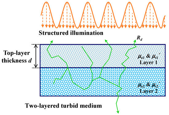 - Yudovsky, D.; Durkin, A.J. Spatial frequency domain spectroscopy of two layer media. J. Biomed. Opt. 2011, 16, 107005. [Google Scholar] [CrossRef]