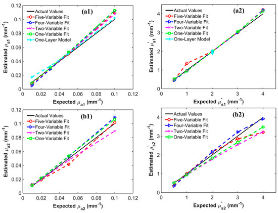 | One-variable fit | μa1 or μs1′ or μa2 or μs2′ | the other four | Equation (2) |