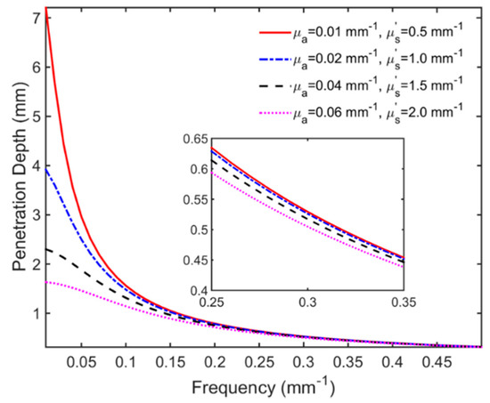 3.4. Relationship Between Light Penetration Depth and Spatial Frequency