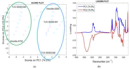 Multivariate analysis (MVA) is a rapid and efficient chemometric tool suitable to study complex instrumental data sets and able to unveil the hidden information in them []. There are more than 20 different ways to perform MVA depending on the type of data and the objectives to be achieved, including Principal Component Analysis (PCA). PCA is the most widely used chemometric technique for handling FTIR spectral data and obtaining the desired information.
