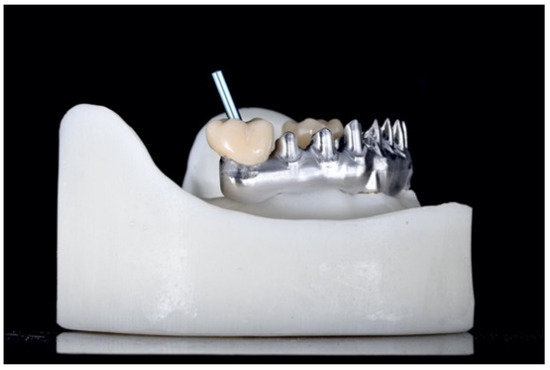 - Pessin Camatta, H.; Melim Ferreira, R.; Mota Ferrairo, B.; Sandy Strelhow, S.; Henrique Rubo, J.; Akemi Mori, A.; Feruzzi, F. Mechanical behavior and fracture loads of screw-retained and cement-retained lithium disilicate implant-supported crowns. J. Prosthodont. 2020, 27. [Google Scholar] [CrossRef]