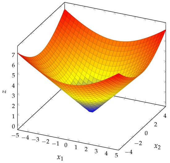 where and . is the norm-2 of the vector x (hence it is also called a Euclidean cone). Figure 1 shows a second order cone in , clearly a convex set. For further details about optimization convex, see [25].