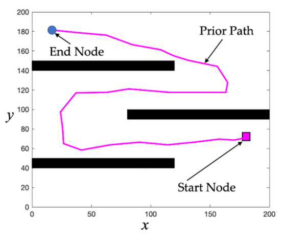 Therefore, a planned path Γi based on reuse is expressed as Γi = Γprior_i + Γconnect_i + Γexploring_i, where Γprior_i is the prior path segment from pi to xend, Γconnect_i is the path segment from xi to pi, and Γexploring_i is the exploring path segment from xi to xstart, i = 1, …, m.