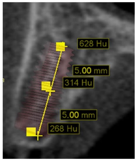 - Silva, I.M.d.C.C.; Freitas, D.Q.d.; Ambrosano, G.M.B.; Bóscolo, F.N.; Almeida, S.M. Bone density: Comparative evaluation of Hounsfield units in multislice and cone-beam computed tomography. Braz. Oral Res. 2012, 26, 550–556. [Google Scholar] [CrossRef]