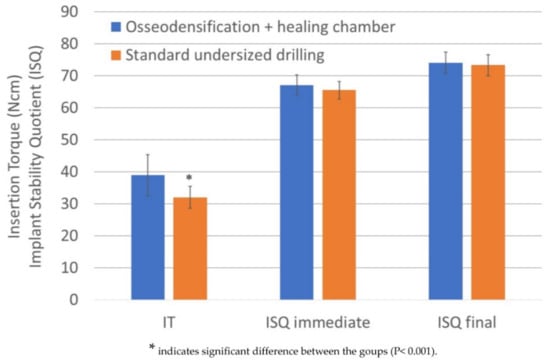 - Bavetta, G.; Bavetta, G.; Randazzo, V.; Cavataio, A.; Paderni, C.; Grassia, V.; Dipalma, G.; Gargiulo Isacco, C.; Scarano, A.; De Vito, D. A Retrospective Study on Insertion Torque and Implant Stability Quotient (ISQ) as Stability Parameters for Immediate Loading of Implants in Fresh Extraction Sockets. BioMed Res. Int. 2019, 2019, 9720419. [Google Scholar] [CrossRef]