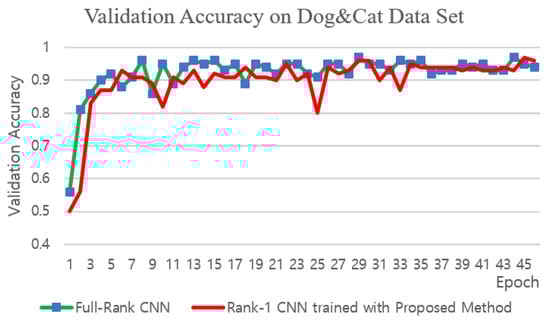 Comparison of validation accuracies on the ‘Dog and Cat’ dataset.