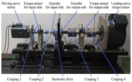In order to evaluate the behavioral degradation, a specialized harmonic drive test device was designed to observe the behavior change of the reducer. As depicted in Figure 6, it is an electromechanical system that includes a driving servo motor, a loading servo motor, two rotary encoders, two torque sensors, an HD unit, and a digital control module. The concentricity was adjusted using an Easy-Laser shaft alignment instrument. The main performance parameters of the test apparatus are displayed in Table 1. An HD (CSF-25-80) was used for the behavioral degradation test. The reduction ratio was 80:1, and it had a rated output torque of 63 Nm.