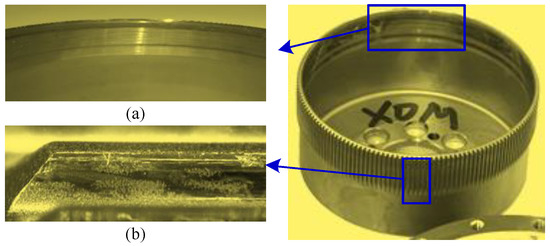 The condition of the rubbing surface after the test: (a) FS inner surface, and (b) FS tooth.
