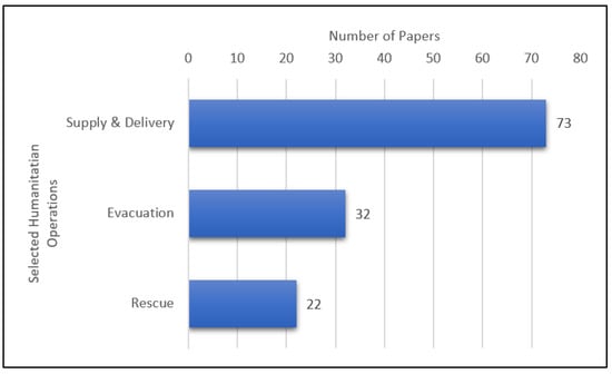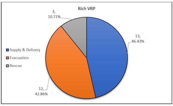 Through the first stage of classification, this study complements the works of [,], which reviewed the applications of VRP in disaster, focusing solely on the delivery of the relief supply. The same could be said for [], which focused on broader OR operations to address the casualty management.