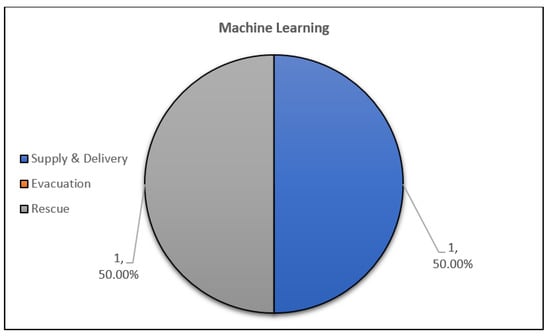 Among all of the specified VRP solution approaches classified, the adoption of the ML solution approach is very limited, due to the curse of dimensionality that is inherited by ML. This is observed in Table A1, Table A2 and Table A3. However, some papers did employ the ML solution approach on a realistic problem instance focusing on a specific case study. For instance, ref. [] incorporated an assessment on sight within a distribution problem by introducing corporation between three humanitarian agents: Relief Assessment Team (RAT), Emergency Response Team (ERT), and Decision Making Agent (DMA) in order to deliver relief supply more efficiently. The DMA learns to make a routing decision for both RAT and ERT through reinforcement learning, which incorporates both the dynamic and stochastic nature of the demand and route access. The initial assessment is made by RAT at a location that is decided by DMA via route also computed by the DMA. RAT, in return, would update the demand and route information back to the DMA, which could be used in order to decide on demand distribution via ERT, which communicates in the same manner as RAT. The highlight of this methodology is the ability of DMA to learn continuously in both online and offline modes. In the offline mode, simulation is performed to generate a scenario in allowing the DMA to learn. Meanwhile, in the online mode, real information is updated and included in the learning process of DMA. Thus, this particular work highlights the strength of the ML solution approach in addressing complex coordination while addressing both dynamic and stochastic elements of the problem in a flexible manner.