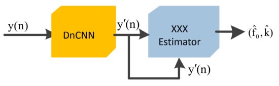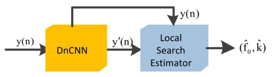 Schematic diagram of the proposed estimator, is an observation signal, is the output of Denoising Convolutional Neural Network (DnCNN), is the output of the proposed estimator.