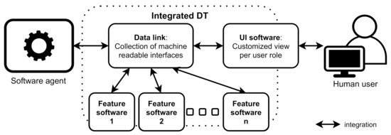 The components are tied together with a data link, which is being developed towards a ready-made software tool in a follow-up project. There are also several partial implementations of this conceptual approach, such as the Message Queuing Telemetry Transport (MQTT) broker [45], the whole Semantic Web approach [46], API gateways by different providers, the digital twin definition language [47], and the DT Core presented in Section 3.5. These represent the practical work towards integrated digital twins, and the data link concept is a statement to combine these approaches to create more comprehensive digital twins.