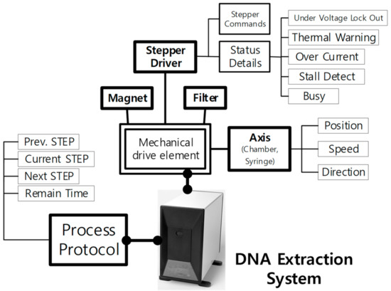 The proposed system consists of an automated DNA extraction system, an MTConnect adapter based on the MTConnect standard technology, an MTConnect agent, and a user-controlled UI client application based on a web application.