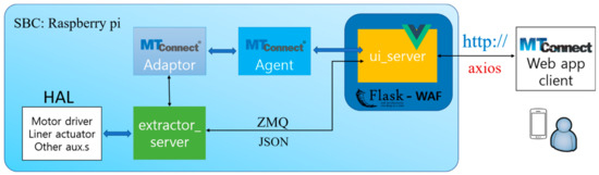 Figure 9), so that user control feedback can be immediately checked through MTConnect monitoring, enhancing the usefulness of function utilization. In addition, by implementing a web application-based client using Vue.JS, we sought to guarantee the same user experience regardless of the client’s platform and equipment.