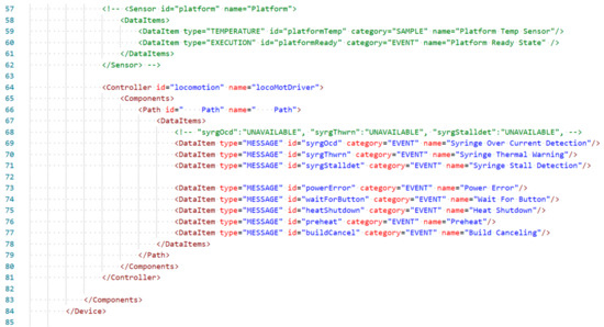 MTConnect is a standard originally developed to interface between information systems or applications with production equipment and machine tools to collect and manage manufacturing data. Many of the general “DataItems” specified in the standard are far from those optimized for the characteristics of medical devices. Therefore, “DataItem,” the specific device component of the automated DNA extraction system to be monitored through MTConnect, was selected as an element suitable for the characteristics of POCT equipment, based on the latest MTConnect Version 1.6 standard specification and implemented in the agent.
