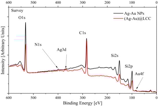 XPS survey spectra of Ag-Au and (Ag-Au)@LCC.