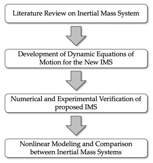 The approach followed in this research included four main parts, as outlined in Figure 1. First, a literature review was undertaken to examine and identify the advantages and shortcomings of existing inertial loading systems used in shake table experiments on large-scale structural specimens. Second, a new inertial system was conceived and analytically assessed by determining the associated dynamic equation of motions of the system. Third, the proposed system was experimentally and numerically evaluated to study the seismic performance when incorporating large-scale bridge column specimens. Finally, non-linear modeling of the proposed system was used to compare performance to the other prominent inertial loading setups.