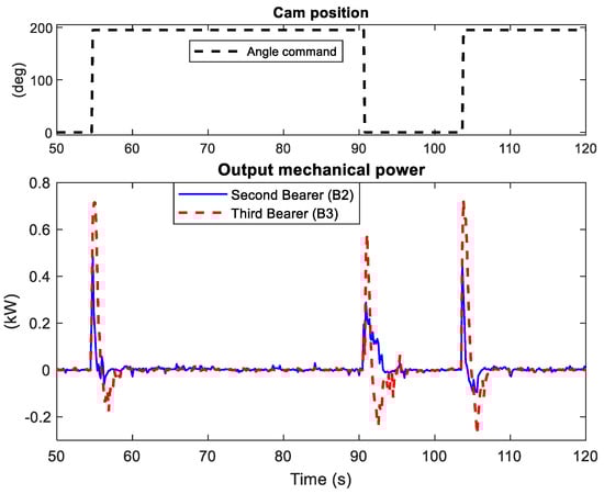 Mechanical power of the two bearers B2 and B3 at double actuation mode.