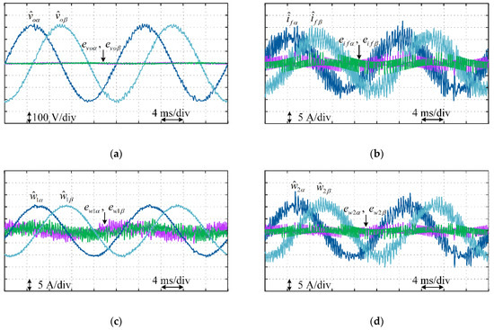 In this subsection, an adaptive observer is presented to obtain the augmented model and estimate the lumped disturbances (w). The observer also helps the control system to compensate for delays due to digital implementation by estimating signals and disturbances one sample ahead. It also eliminates the load-current sensors, which increases system reliability by removing some physical components subject to damages. Finally, higher noise immunity and size and cost reduction are the other essential advantages of the observer’s determined signals.