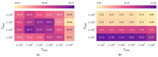 The effect of and on model training and copressionn. (a) Accuracy (%) on the test set. (b) Compression rate (%) at the end of the training process.