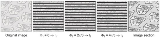 Samples in life sciences include two-dimensional and three-dimensional cell cultures, biopsies, and living organisms with (at least) a minimum of optical transparency. In conventional wide-field microscopy, an image is generated from the focal plane of a sample with superimposed out-of-focus information that severely diminishes spatial contrast. As this method does not provide any possibilities of sectioning per se, 3D microscopy needs some special equipment. One method is Optical Sectioning Structured Illumination Microscopy (OS-SIM), where an optical grid is imaged in the plane of the sample in three phase positions Φ1 = 0, Φ2 = 2π/3, and Φ3 = 4π/3, resulting in the intensities I1, I2, and I3. An algorithm I = [(I1 − I2)2 + (I1 − I3)2 + (I2 − I3)2]1/2 permits calculation of an image of the focal plane, while out-of-focus images add up to zero, as depicted in Figure 1. Upon variation of the sample’s vertical position, several focal planes can thus be detected, and a 3D image with high contrast may be calculated [].