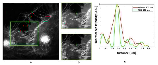 - Richter, V.; Piper, M.; Wagner, M.; Schneckenburger, H. Increasing Resolution in Live Cell Microscopy by Structured Illumination (SIM). Appl. Sci. 2019, 9, 1188. [Google Scholar] [CrossRef]