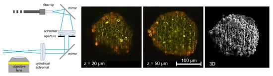 - Bruns, T.; Bauer, M.; Bruns, S.; Meyer, H.; Kubin, D.; Schneckenburger, H. Miniaturized modules for light sheet microscopy with low chromatic aberration. J. Microsc. 2016, 264, 261–267. [Google Scholar] [CrossRef]