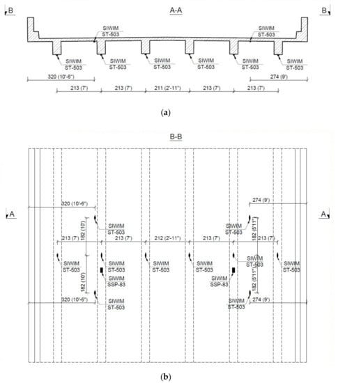 B-WIM systems are available in the literature [,,]. The advantage of the B-WIM system is the reduction of the dynamic effects due to the fact that the bridge deck is used as a large weighing scale []. The accuracy of the measurement depends on the bridge deck condition and surface smoothness, which may induce excessive bridge vibration. The B-WIM installation and equipment itself do not affect the structure of the bridge. Furthermore, the B-WIM system also informs about traffic and provides a realistic response of the structure.