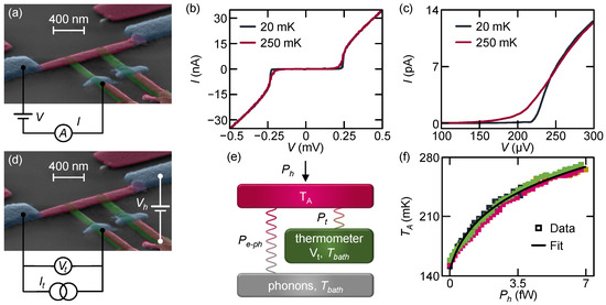 as schematically represented in Figure 4e. Since the active region is in the normal-state, the power exchanged via electron–phonon interaction is described by Equation (6), while the power flowing through the thermometer reads [44]