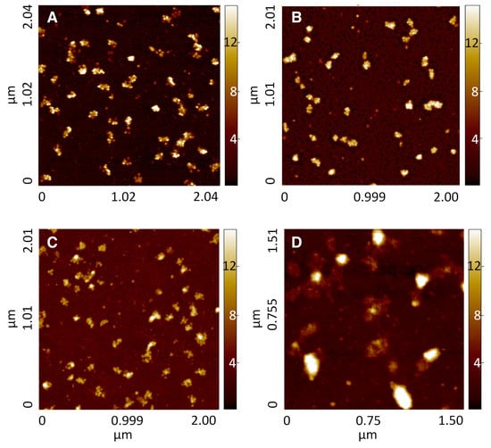 - Moreno-Herrero, F.; Colchero, J.; Baró, A.M. DNA height in scanning force microscopy. Ultramicroscopy 2003, 96, 167–174. [Google Scholar] [CrossRef][Green Version]