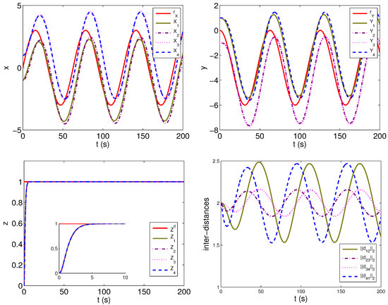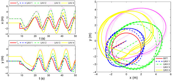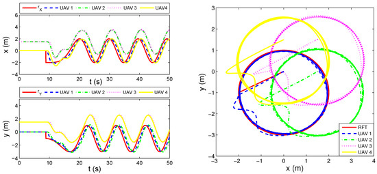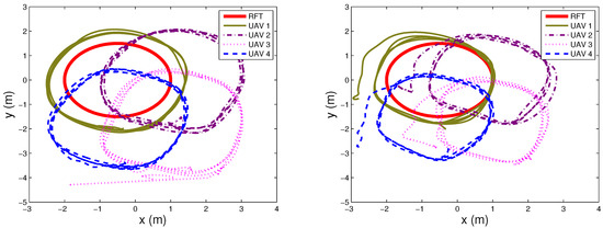In Figure 5, we observe from Figure 5 that even at the beginning (when s), the quadrotors are able to follow the given trajectory, after 20 s, the performance becomes not satisfactory, although the formation errors keep stable.
